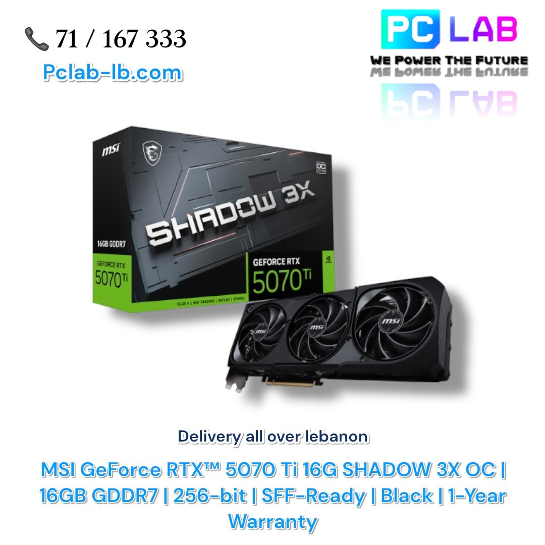 MSI GeForce RTX™ 5070 Ti 16G SHADOW 3X OC | 16GB GDDR7 | 256-bit | SFF-Ready | Black | 1-Year Warranty
