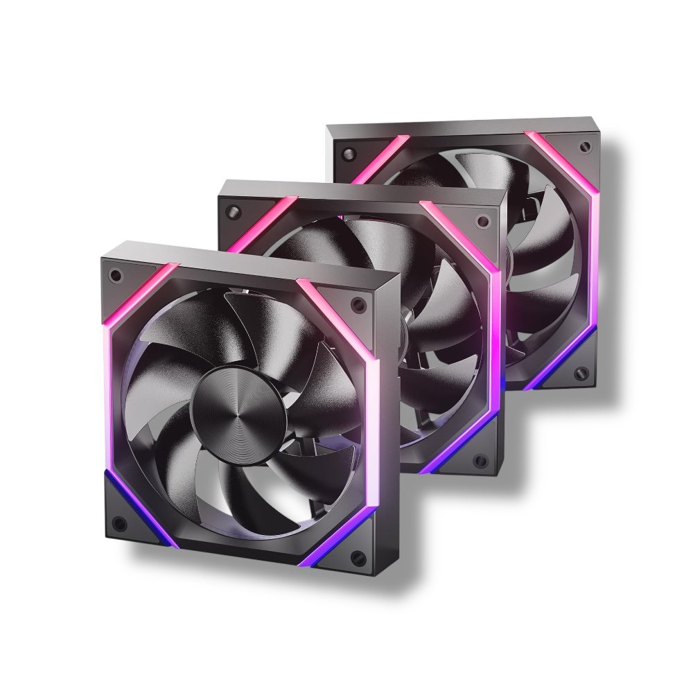 ▸ SKU: NYOTA-FORWARD-BLACK1 ▸ Brand: AsiaHorse ▸ Model: NYOTA ARGB 120mm (Forward Black, 1 Pack) ▸ Cooling Method: Air ▸ Connector Type: 4-Pin (PWM + ARGB) ▸ Voltage: 5V ▸ Wattage: 6W ▸ Bearing Type: Hydraulic Bearing ▸ Fan Size: 120 × 120 × 25mm ▸ Speed: 800–2000 RPM (PWM adjustable) ▸ Airflow: 61.5 CFM ▸ Noise Level: