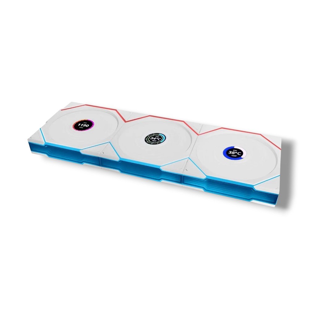 ▸ SKU: 12TLLCD1W3W-WHITE ▸ Brand: Lian Li ▸ Model: 12TLLCD1W3W ▸ Fan Size: 120mm ▸ Fan Count: 3 ▸ Type: Case Fan ▸ Color: White ▸ LED: Addressable RGB ▸ Controller Included: Yes (Required) ▸ Wireless Signal: 2.4 GHz ▸ Bearing Type: Fluid Dynamic ▸ Cooling Method: Fan ▸ Special Features: 1.6″ LCD Display, Infinity Mirror, Daisy-Chain, Wireless ARGB Control ▸ Compatibility: Desktop PC (ATX / Micro-ATX / Mini-ITX)