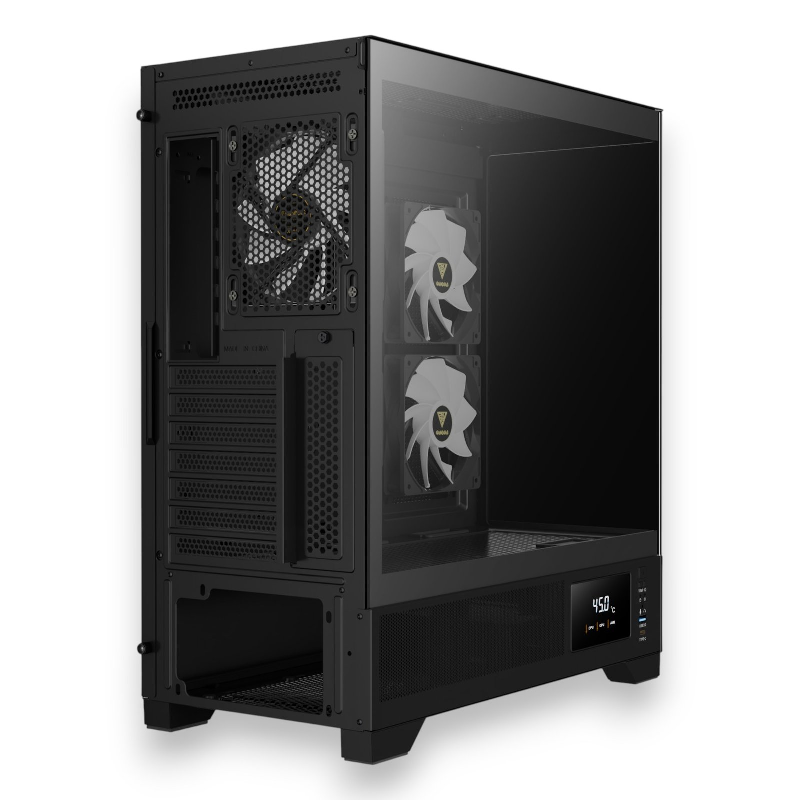 💻 GAMDIAS ATLAS M1 Mid-Tower Gaming PC Case | Tempered Glass | Built-in 3×120mm ARGB PWM Fans | Digital Display & App Control | Supports Up to RTX 4000 GPU / VGA 410mm | 360mm AIO / Radiator | 6×120mm Fans | 160mm CPU Cooler | Black