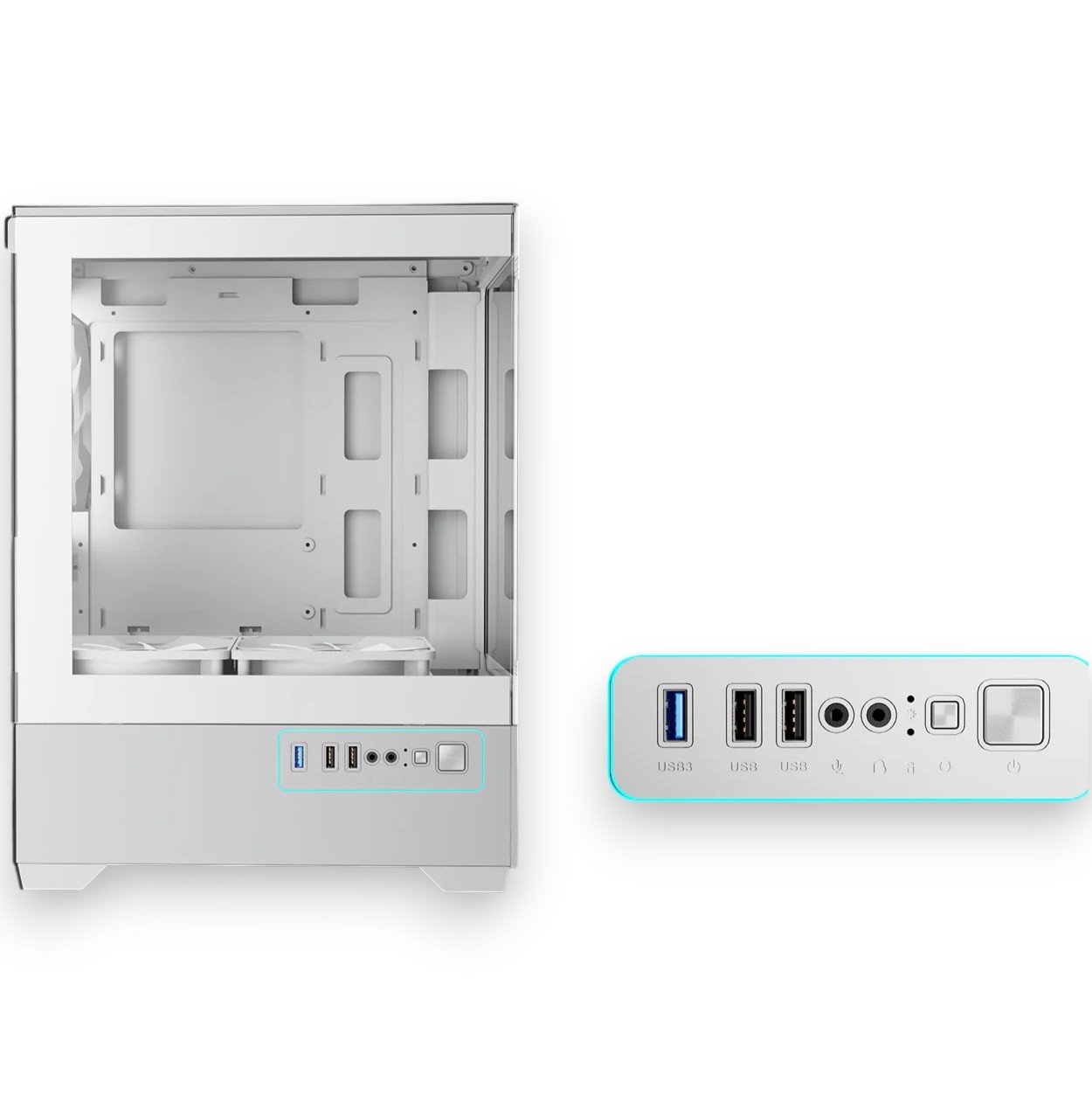 💻 Gamdias Aura GC9M ARGB Micro Tower Case | 3× Pre-Installed 120mm ARGB Fans | Panoramic Tempered Glass | 280mm GPU Support | WHITE