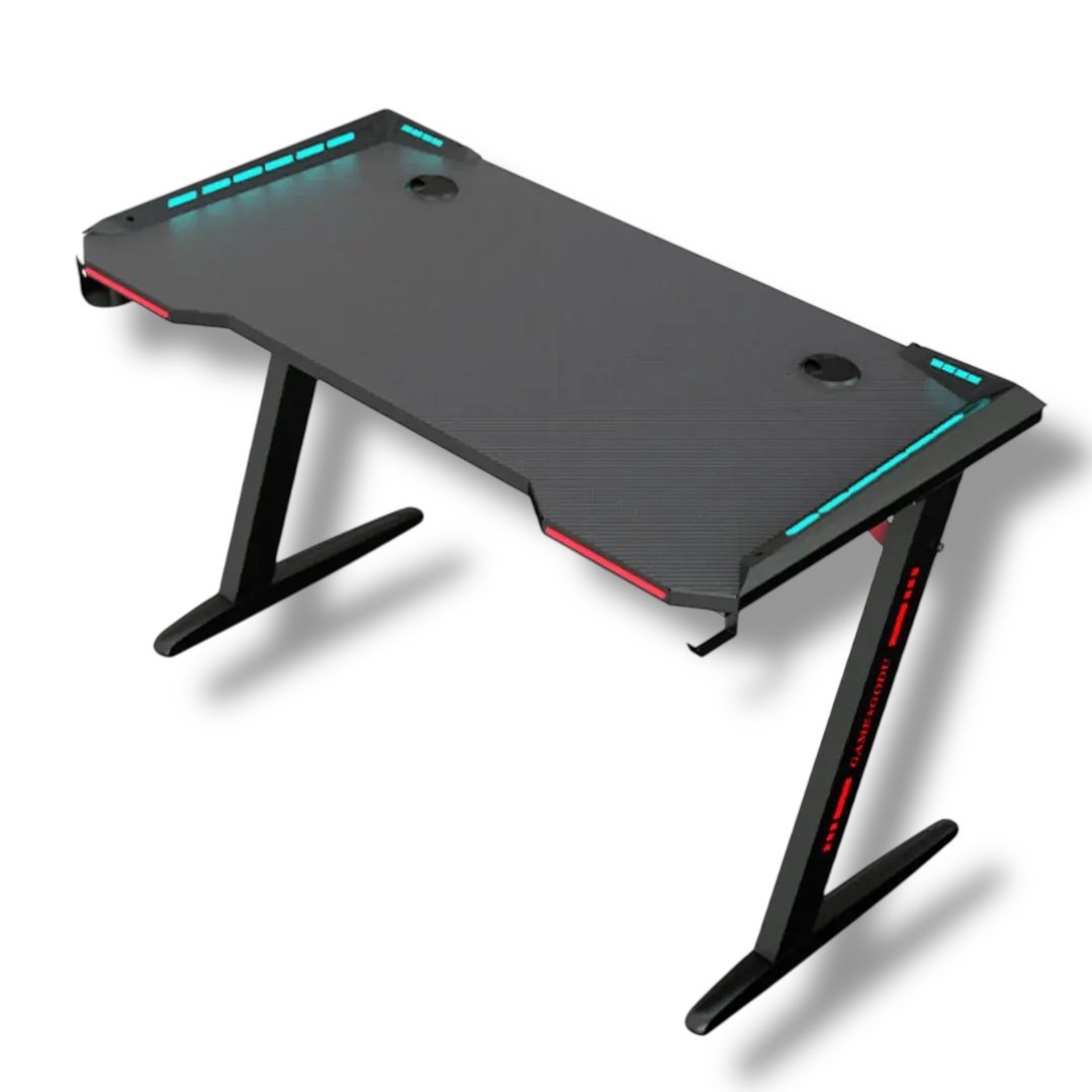 Z8 RGB Gaming Desk | 120CM Carbon Fiber Surface | Z-Shaped Steel Frame | RGB Lighting | Black & Red
