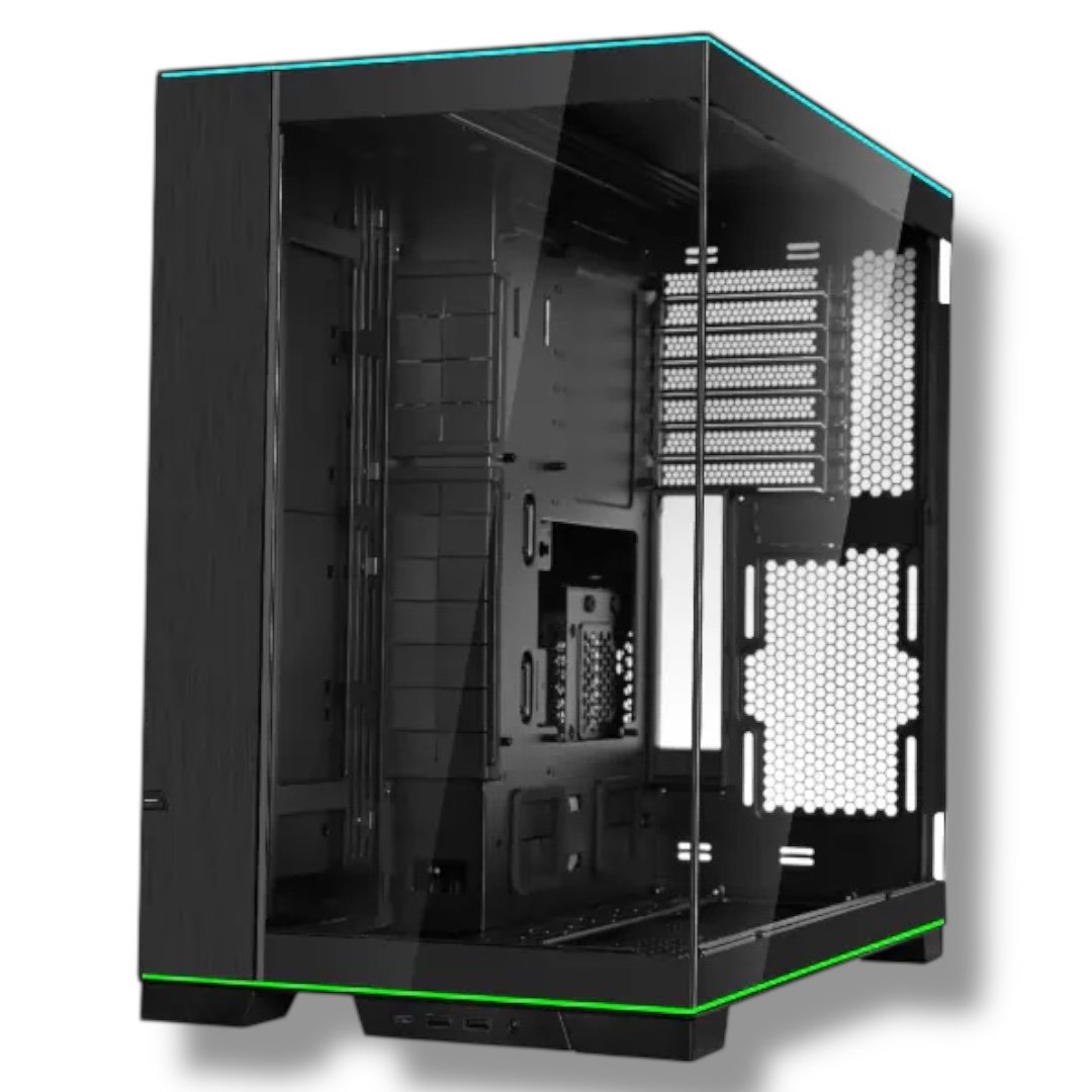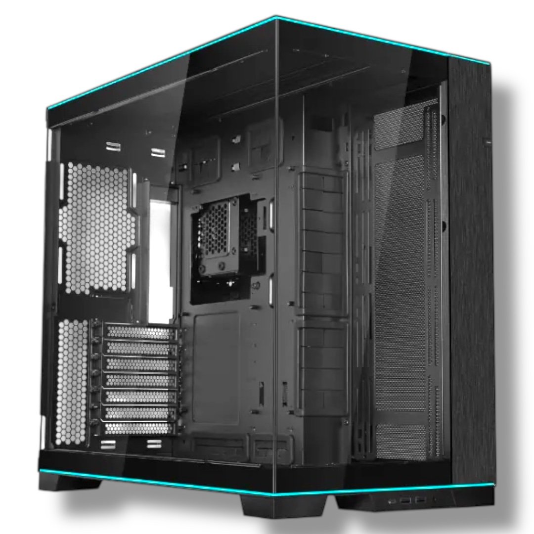 ▸ SKU: O11D-EVO-RGB-BK ▸ Model: LIAN LI O11 Dynamic EVO RGB Mid Tower (Black) ▸ Form Factor Support: E-ATX, ATX, Micro-ATX, Mini-ITX ▸ Chassis Orientation: Reversible (Left or Right Display Mode) ▸ ARGB Lighting: Dual L-shaped Strips (Top & Bottom), 14 Effects, 11 Colors, 5 Brightness Levels ▸ Panels: Tempered Glass (Front & Side) with Removable Pillar ▸ Fan Support: Up to 10 Fans • Top – 3×140mm • Side – 3×140mm • Bottom – 3×140mm • Rear – 1×120mm ▸ Radiator Support: • Top – 420mm / 360mm • Side – 360mm / 280mm • Bottom – 360mm • Rear – 120mm ▸ Drive Bays: Up to 8 (HDD/SSD) ▸ GPU Mounting: Horizontal, Vertical (Optional Kit), or Upright ▸ I/O Ports: USB-C, Multiple USB-A, Audio (Relocatable to 3 Positions) ▸ Dimensions: Slightly Larger Than O11D EVO (Improved Component Clearance) ▸ Cable Management: 15mm Extended PSU Clearance, Dual-Layer Clips, Vertical Grommets, Velcro Straps ▸ Material Finish: Aluminum, Steel, Mesh, Tempered Glass (Tinted or Clear) ▸ Color: Black