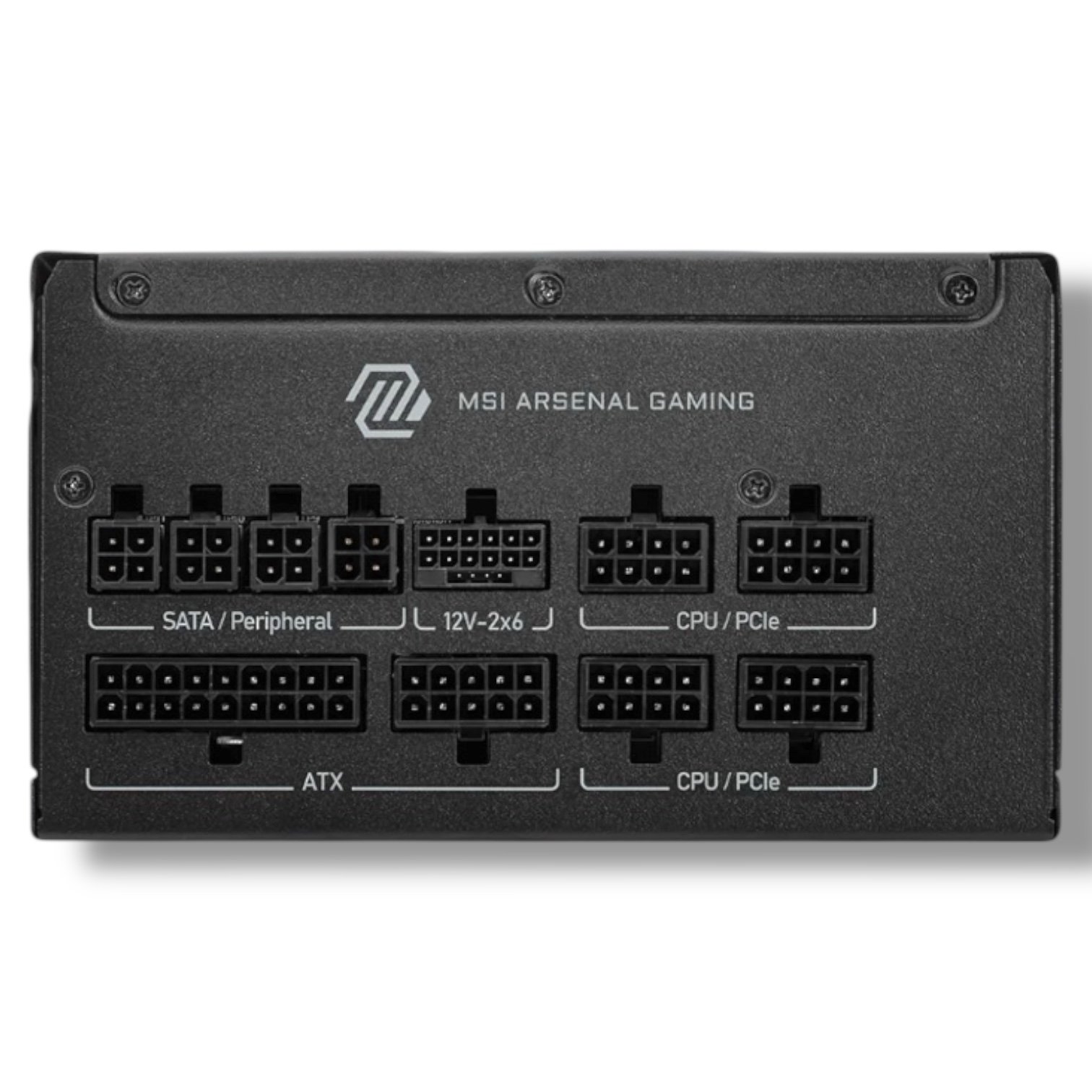 ▸ SKU: 306-7ZPIY11-CEO ▸ Model: MSI MAG A850GLS PCIe5 ▸ Form Factor: ATX 3.1 ▸ Efficiency Rating: 80 PLUS Gold (Up to 90%) ▸ Wattage: 850W ▸ Power Excursion: Up to 220% (1870W for 100µs) ▸ PCIe Support: PCIe 5.1 with Native 12V-2×6 (16-pin) ▸ Connector Power (16-pin): Up to 600W ▸ Fan Size: 135mm ▸ Fan Bearing: Fluid Dynamic Bearing (FDB) ▸ Dimensions (DxWxH): 150 × 150 × 86 mm ▸ PFC Type: Active PFC ▸ Input Voltage Range: 100–240V~ ▸ Input Frequency Range: 47–63 Hz ▸ Main Capacitor: Japanese 105°C Rated ▸ Protection Features: OCP, OTP, OPP, SCP, OVP, UVP, SIP, NLO ▸ Connectors: • 1× ATX (24-pin) • 2× EPS (8-pin) • 1× PCI-E 5.1 (16-pin, 600W) • 4× PCI-E (6+2 pin) • 8× SATA (15-pin) • 3× Peripheral (4-pin) • 1× FDD (4-pin) ▸ Cables: Full Modular, Embossed Jacket Design