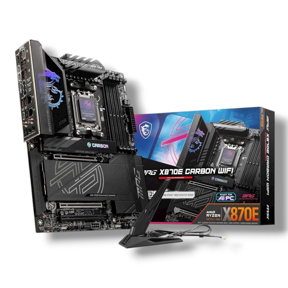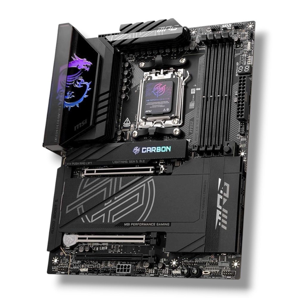 MSI MPG X870E CARBON WIFI ATX Motherboard – Supports AMD Ryzen 9000 / 8000 / 7000 Series, AM5, DDR5 8400+, 18+2+1 Power Stages, Wi-Fi 7, 5G LAN, PCIe 5.0, USB4 40Gbps, EZ DIY, Lightning Gen 5 M.2 quantity