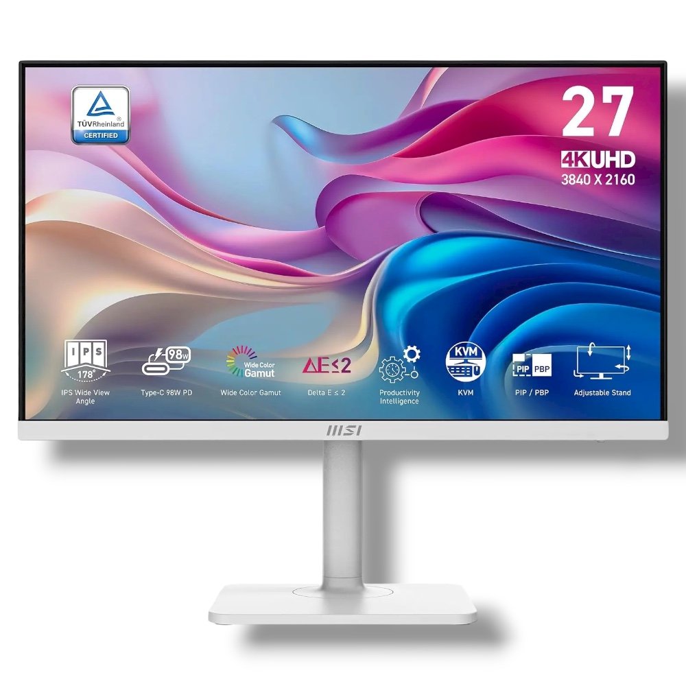 MSI Modern MD272UPHW 27-Inch 4K UHD IPS Business Monitor | ΔE ≤ 2 | 97% DCI-P3 | USB-C 98W PD | KVM | TÜV EyesErgo | 4-Way Ergonomic Stand