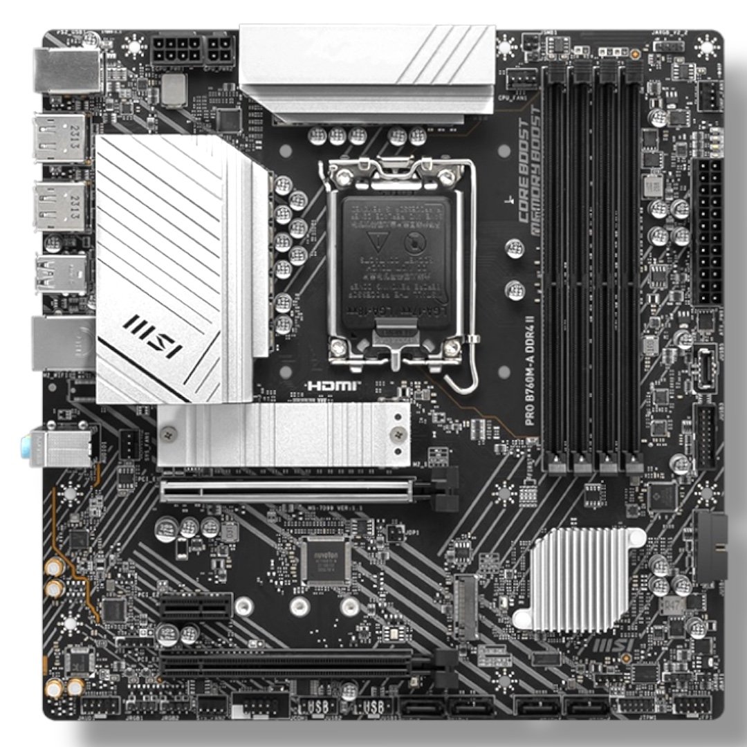 MSI PRO B760M-A WIFI DDR4 II mATX Motherboard – LGA1700, DDR4 5333+ OC, PCIe 4.0, Dual M.2 Gen4, Wi-Fi 6E, 2.5G LAN