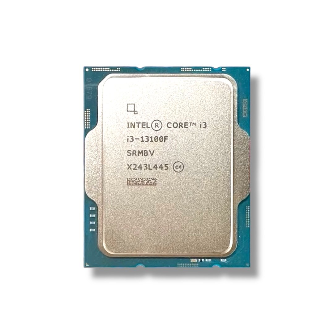 • SKU: 13100F-TRAY • Series: Intel Core i3 13th Gen • Socket Type: LGA 1700 • Core Name: Raptor Lake • Cores/Threads: 4 Cores / 8 Threads • Clock Speeds: • Max Turbo Frequency: 4.5 GHz • P-core Base Frequency: 3.4 GHz • Cache: • L3 Cache: 12 MB Intel® Smart Cache • L2 Cache: 5 MB • Memory & Expansion: • Memory Support: DDR5 4800 / DDR4 3200 • Max Memory Size: 128 GB • PCI Express Revision: 5.0 & 4.0 • Max PCIe Lanes: 20 • Thermal & Power: • Processor Base Power: 58W • Maximum Turbo Power: 89W • Integrated Graphics: None (Discrete GPU Required) • Physical & Software: • Package: Industrial Tray (No Box) • Warranty: 1-Year Limited Warranty