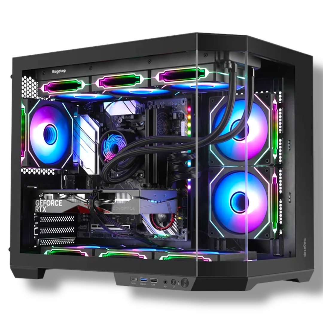 • SKU: LUMI-3T-BLACK • Category: M-ATX High-Airflow Gaming Case • Model: Segotep Lumi 3T • Color: Midnight Black • Side Panel: Tool-less Tempered Glass • Hardware Compatibility: • Motherboard Support: M-ATX / ITX • Max GPU Length: 415 mm • Max CPU Cooler Height: 158 mm • Max PSU Length: 220 mm • Cooling Support (Liquid): • Top/Side: 240 / 280 / 360 mm Radiator • Rear: 120 mm Radiator • Cooling Support (Fans): • Total Support: Up to 10 x 120mm fans • Alternate: Up to 6 x 140mm fans • Note: Fans are not included • Storage & Expansion: • 3.5" HDD Bays: 2 • 2.5" SSD Bays: 3 • PCI Slots: 5 • I/O Ports & Connectivity: • Ports: 1x USB Type-C, 1x USB 3.0, 1x USB 2.0, HD Audio