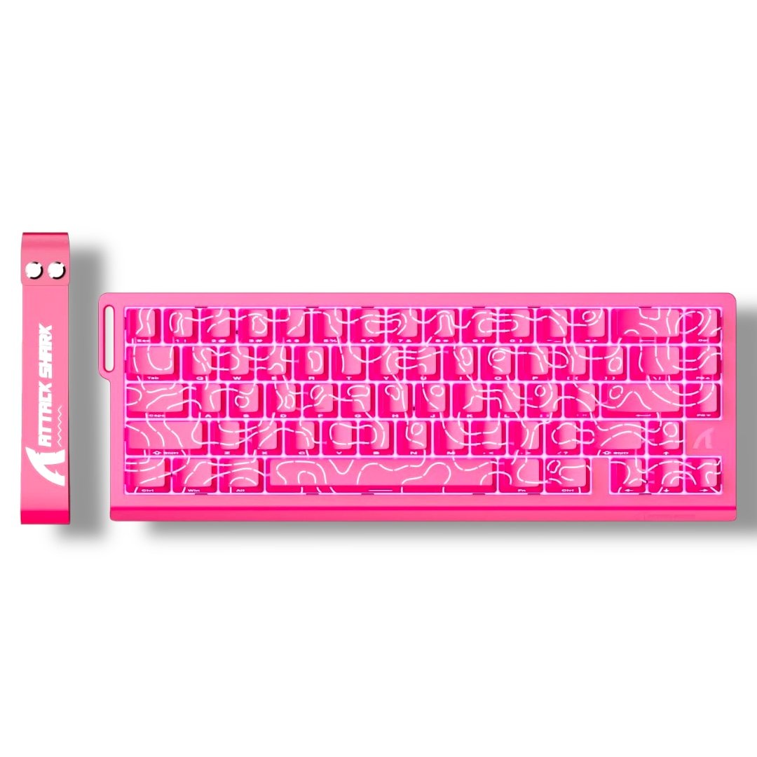 • SKU: KB-X68HE-ROSE-RED • Model: ATTACK SHARK X68HE (Rose Contour) • Layout: 60% Compact (66 Keys) • Switch Type: Magnetic Linear (Hall Effect) • Performance Attributes: • Polling Rate: 8000Hz (Wired) • Latency: 0.125ms • Scan Rate: 128K • RT Accuracy: 0.01mm • Actuation Range: 0.1mm – 3.4mm • Build & Materials: • Structure: Top Mount • Plate: Aluminum Alloy (Anodized) • Dampening: Dual-Layer PORON Foam • Keycaps: PBT Double-Shot (Side-Printed) • Connectivity & Support: • Connection: USB-C Wired • Hot-Swap: Yes (N-pole downward magnetic switches) • Compatibility: PC (Windows), Mac (macOS) • Weight: Approx. 855g