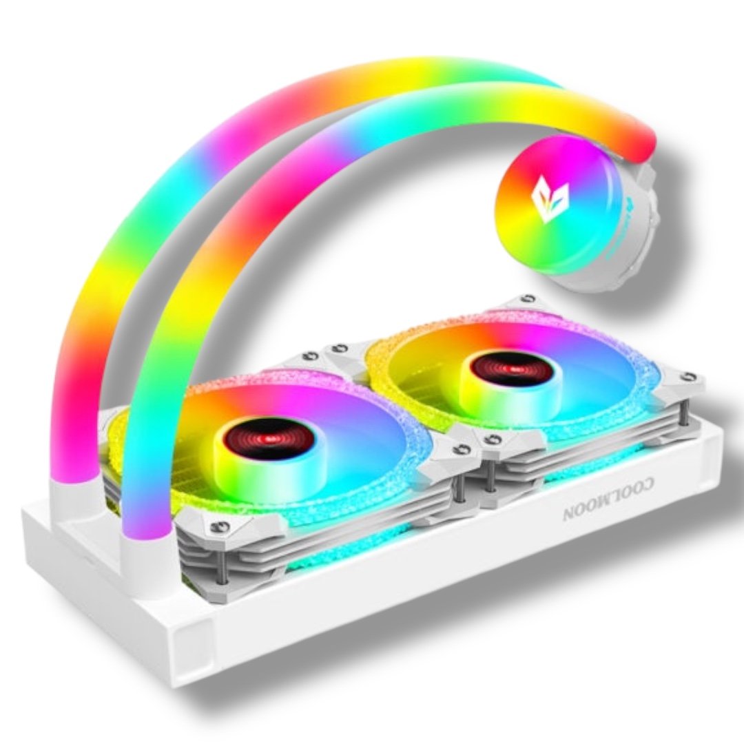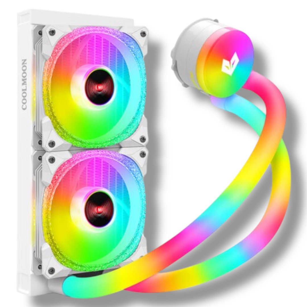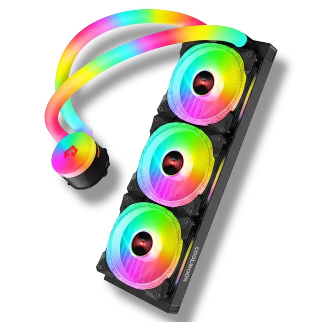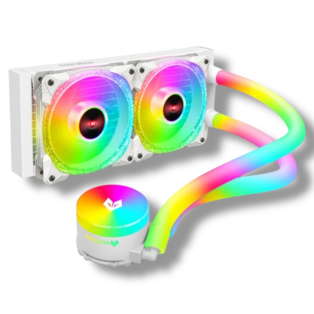 Stylish and efficient 240mm ARGB liquid CPU cooler featuring diamond ARGB fans, glowing tubes, and a pure copper base—perfect for mid to high-performance gaming builds with quiet operation and wide Intel & AMD compatibility.
