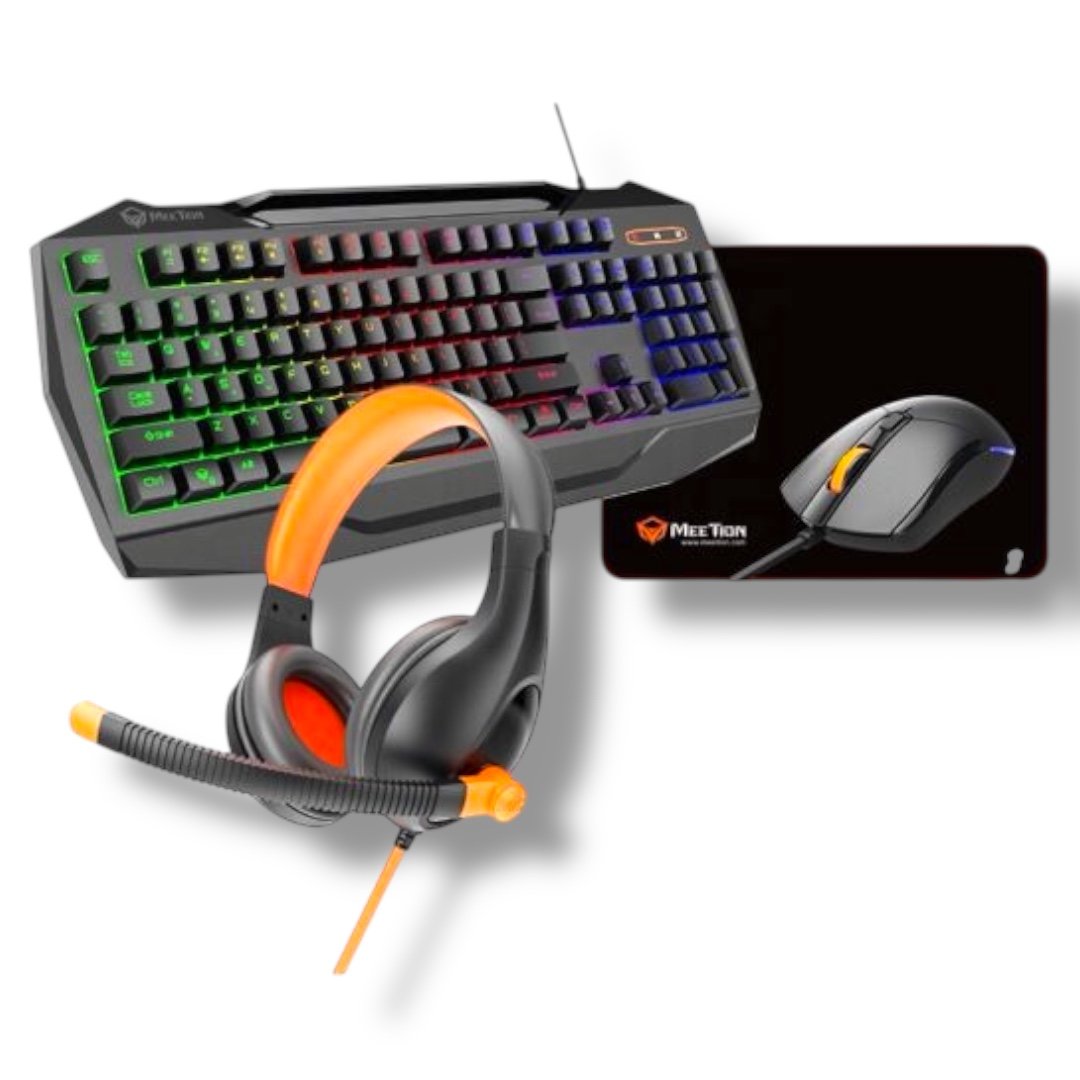 ▸ Model: MEETION C490 ▸ Language Layout: US + Arabic ▸ Connectivity: USB (keyboard & mouse), 3.5mm audio jack (headset) ▸ OS Compatibility: Windows XP / Vista / 7 / 8 / 10 / 11, macOS Keyboard ▸ 104/105 Keys, 12 Shortcut Keys ▸ 19 Anti-Ghosting Keys ▸ RGB LED Backlight ▸ Dimensions: 470 × 188.5 × 34.5 mm ▸ Cable Length: 180 cm Mouse ▸ Optical Sensor ▸ DPI: 800 / 1600 / 2400 ▸ Polling Rate: 250 Hz ▸ Acceleration: 8 g ▸ Frame Rate: 4000 fps ▸ Lifespan: 20 Million Clicks ▸ Dimensions: 120 × 60 × 38.5 mm Headset ▸ Speaker Size: 40 mm ▸ Frequency Response: 20Hz – 20kHz ▸ Impedance: 32Ω ±15% ▸ Microphone Sensitivity: -38 ±3 dB ▸ Mic Type: Omni-Directional ▸ Cable Length: 2.05 m ▸ Interface: 3.5mm Stereo Jack Mouse Pad ▸ Size: 280 × 200 × 3 mm ▸ Base: Non-Slip Rubber