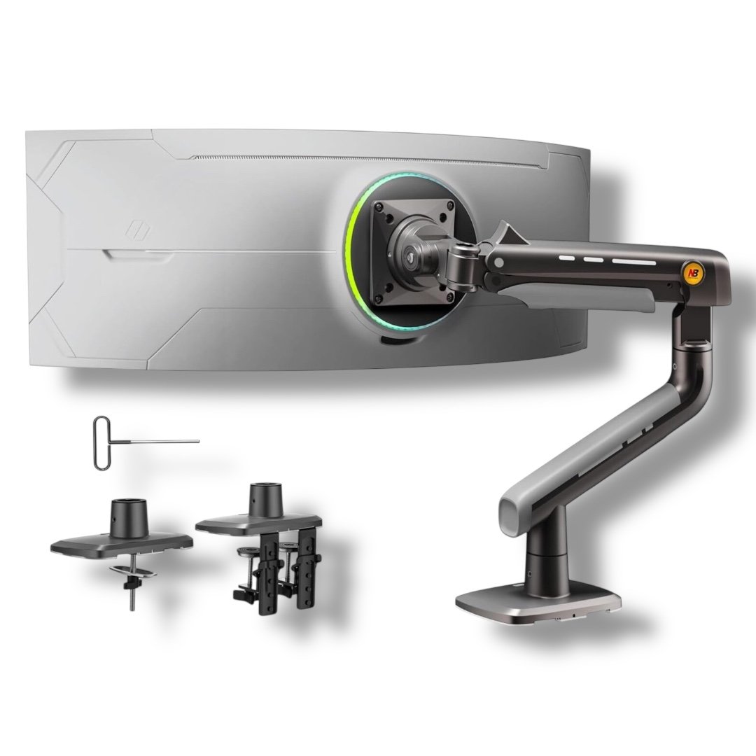 Upgrade your desk setup with the NB A5 Gaming Monitor Arm, designed to support large gaming monitors, ultrawide displays, and curved screens up to 50 inches. Built with a high-precision mechanical spring system, it delivers smooth movement, strong stability, and full ergonomic flexibility for gaming, productivity, and professional workstations.