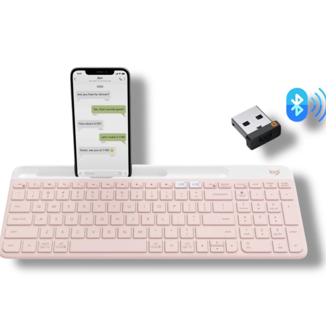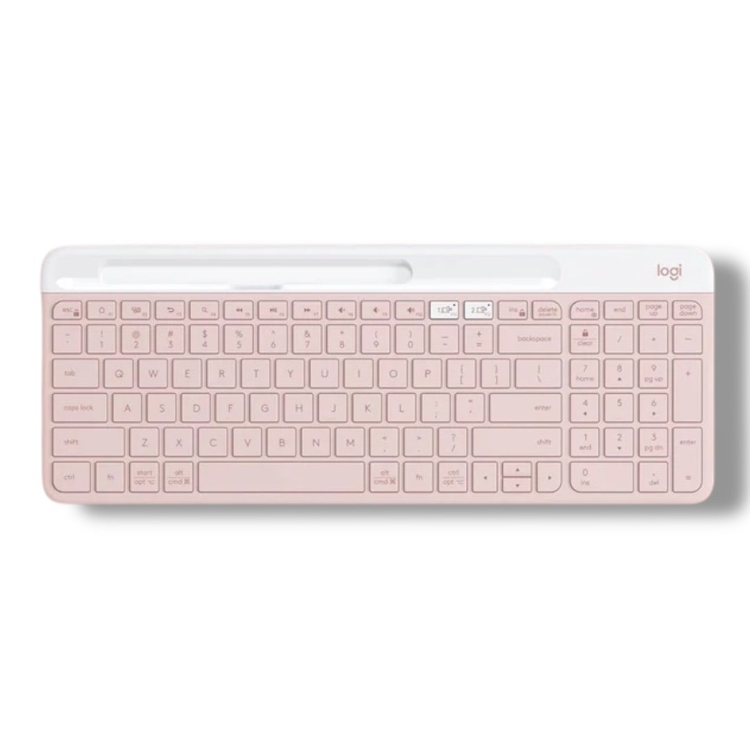 Upgrade your workspace with the elegant and functional Logitech K580 Slim Wireless Keyboard, designed for modern productivity, multi-device control, and ultra-quiet typing—all in a stylish Rose Pink finish.
