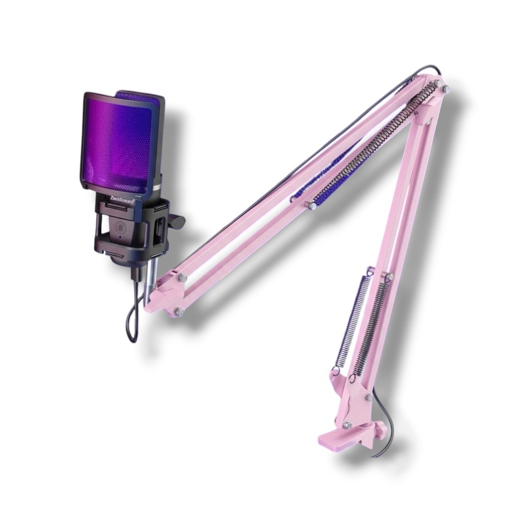 Upgrade your streaming or content setup with the ME6S RGB Microphone — a full professional kit with boom arm + tripod, wide device compatibility, and clean studio-quality audio in a stylish pink finish.