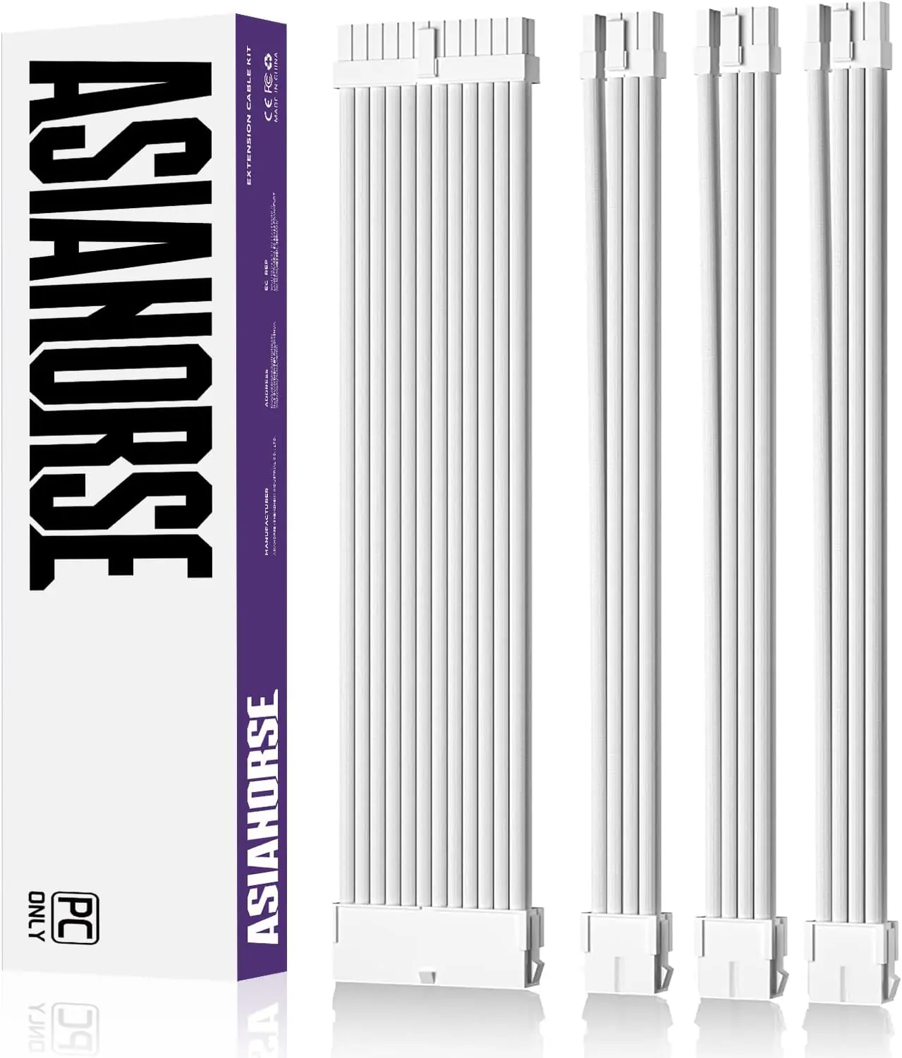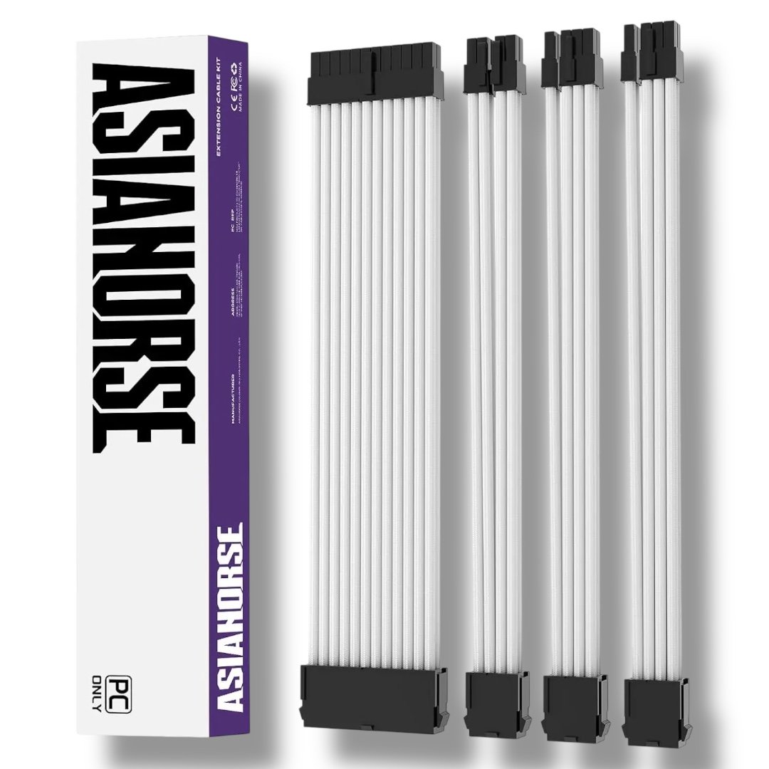 ASIAHORSE 18AWG White Extension Kit | 4-Pack Braided Sleeved Cables