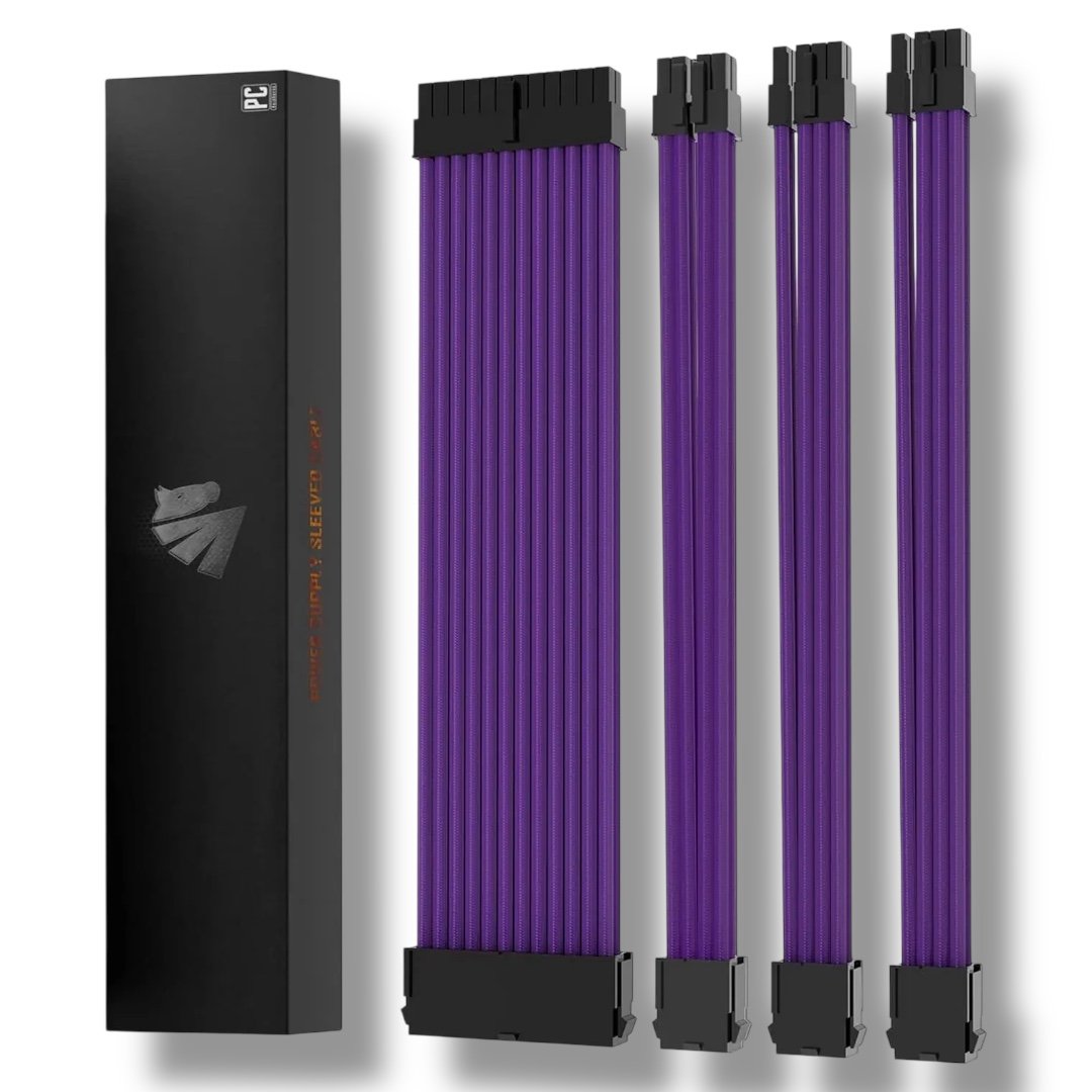 ASIAHORSE 18AWG Purple Extension Kit | 4-Pack Braided Sleeved Cables