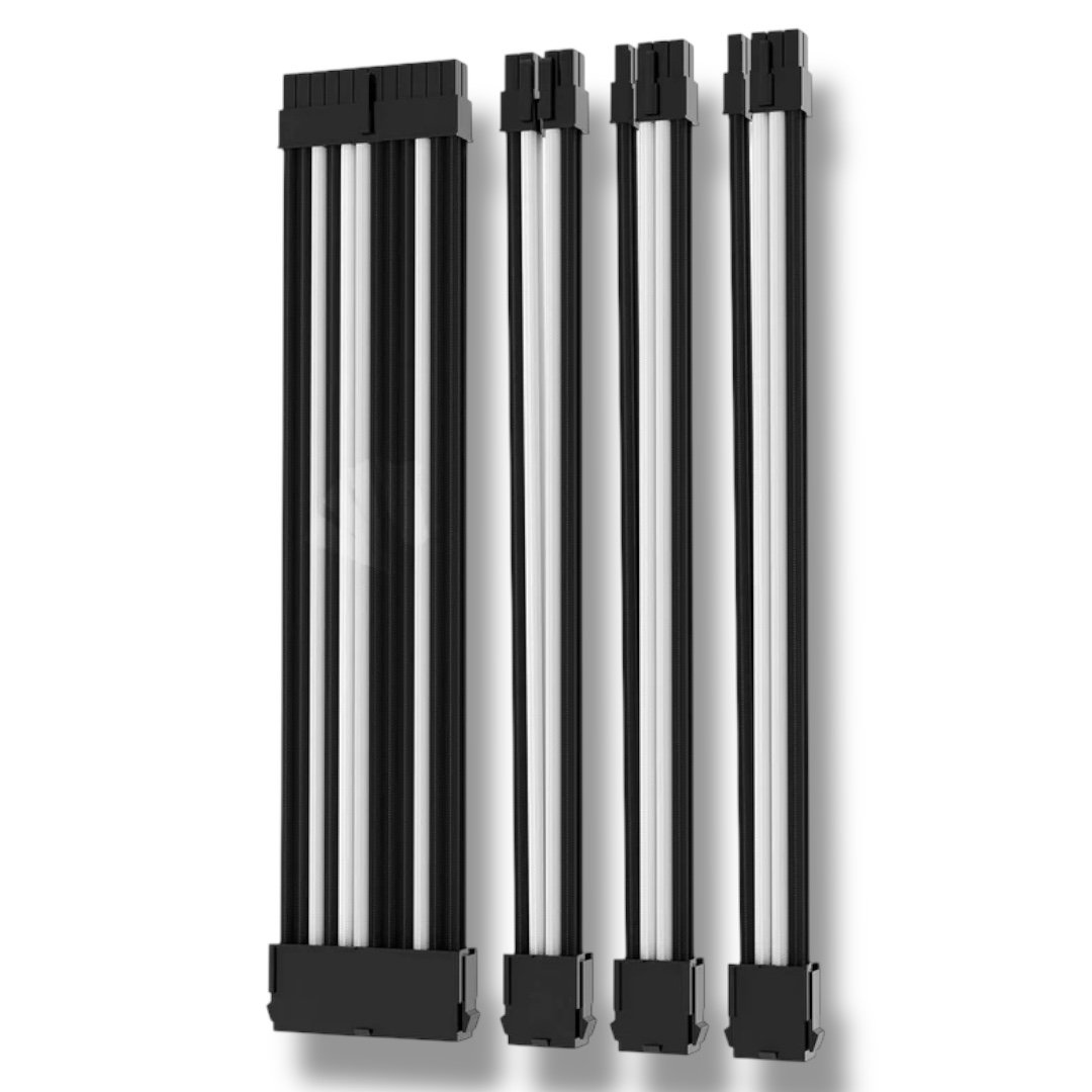 ASIAHORSE 18AWG Black-White Extension Kit | 4-Pack Braided Sleeved Cables