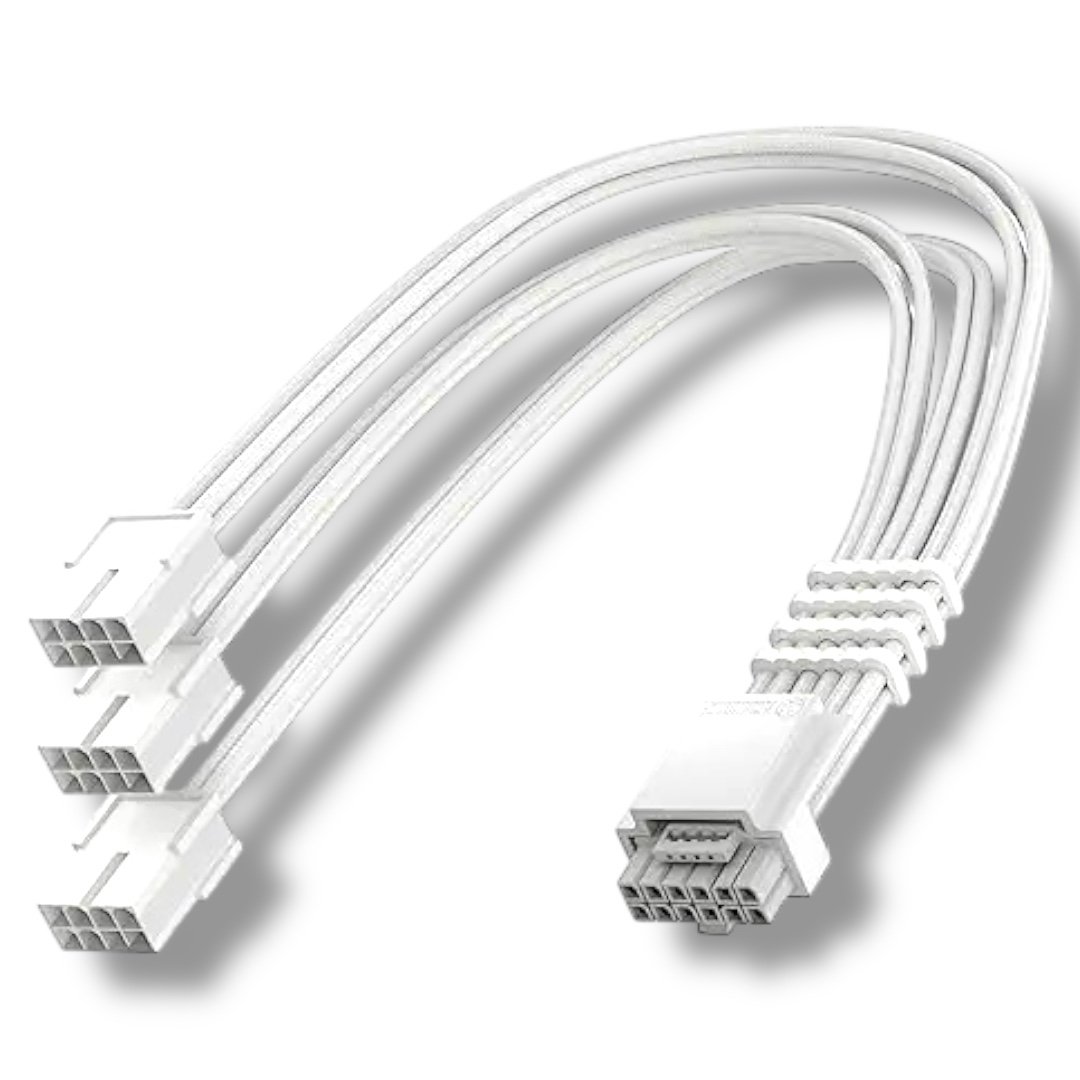ASIAHORSE PCIe 5.0 (12+4) to Triple 8-Pin 180° GPU Extension Cable – 16AWG, 300mm (White)
