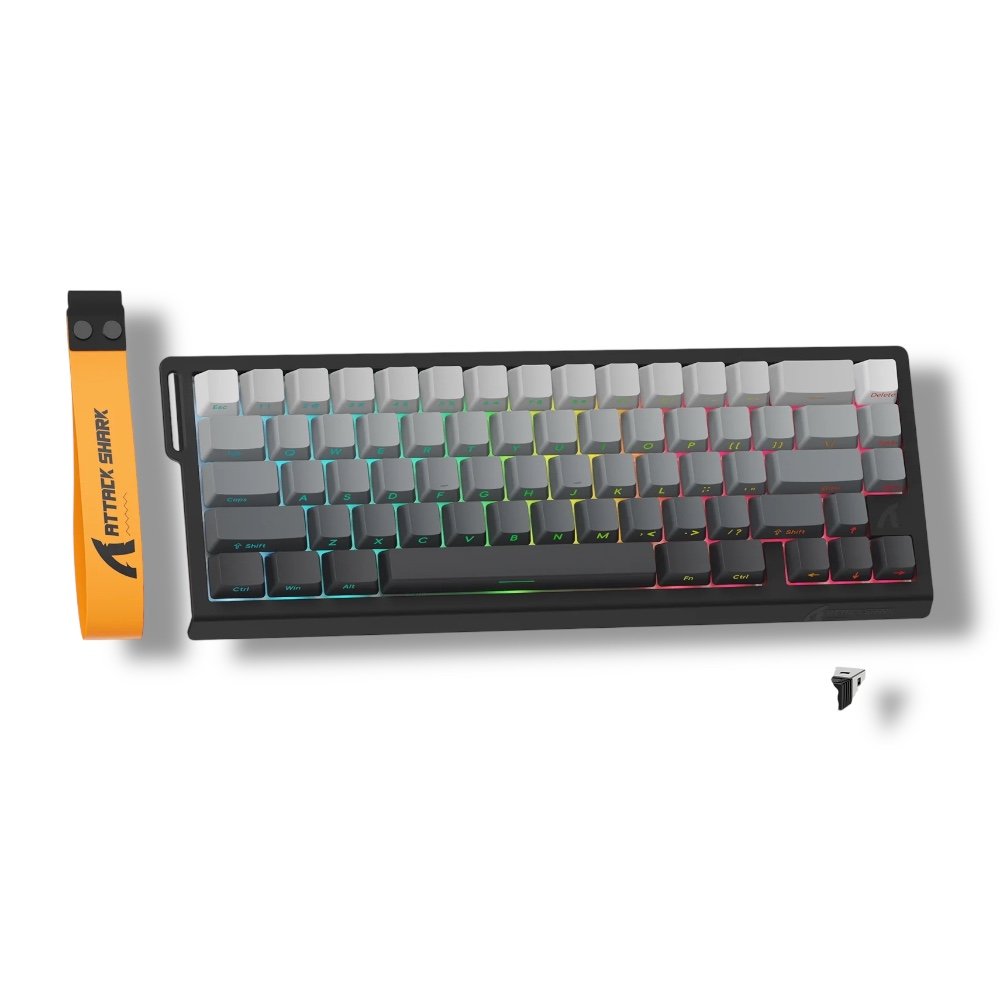 ▸ SKU: ATTACK-X68-MOONNIGHT ▸ Model: Attack Shark X68 HE – Moon Night ▸ Layout: 60% (66 Keys) ▸ Switch Type: Magnetic Linear (Hot-Swappable) ▸ Actuation Point Range: 0.1mm – 3.4mm (Adjustable) ▸ RT Accuracy: 0.01mm ▸ Connectivity: Wired (USB-C) ▸ Polling Rate: 8000Hz ▸ Scan Rate: 128K ▸ Latency: 0.125ms ▸ Input Features: RT, Snap Tap, DKS, MT, TGL ▸ Backlight: South-facing 16M RGB ▸ Keycaps: PBT Double-Shot ▸ Hot-Swappable: Yes (Magnetic, N-pole downward) ▸ Supported Platforms: PC, Mac ▸ Driver: Web-based (qmk.top) ▸ What’s in the Box: Keyboard ×1, Puller Tool ×1, Manual ×1