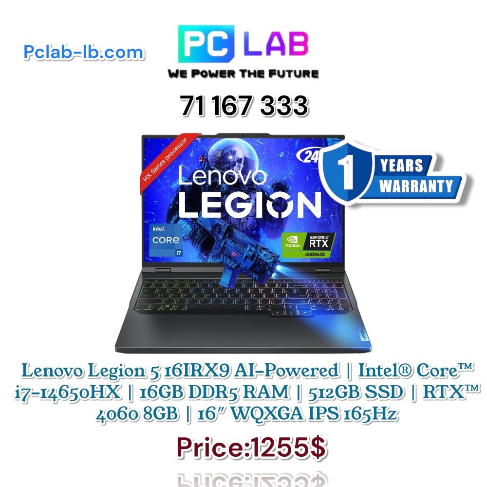Lenovo Legion 5 16IRX9 AI-Powered | Intel® Core™ i7-14650HX | 16GB DDR5 RAM | 512GB SSD | RTX™ 4060 8GB | 16″ WQXGA IPS 165Hz | 4-Zone RGB Keyboard | Windows 11 | Luna Grey | 1-Year Warranty