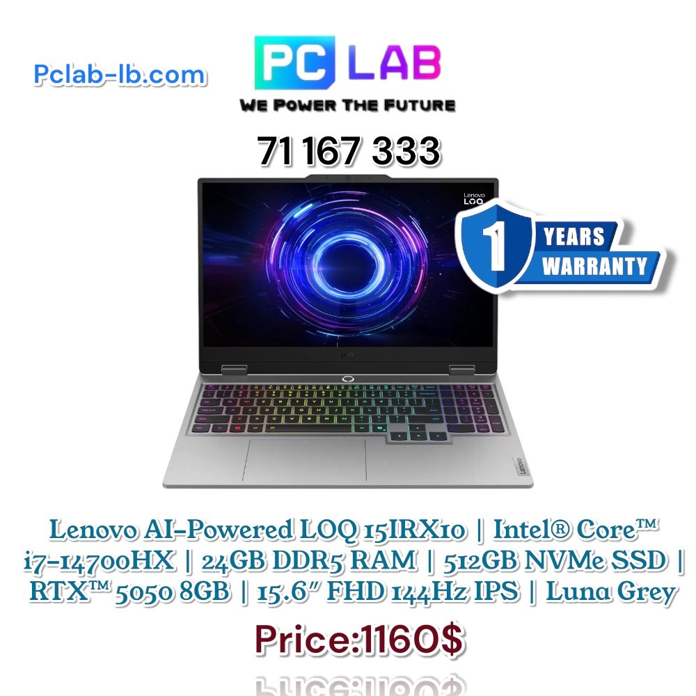 Lenovo AI-Powered LOQ 15IRX10 | Intel® Core™ i7-14700HX | 24GB DDR5 RAM | 512GB NVMe SSD | RTX™ 5050 8GB | 15.6″ FHD 144Hz IPS | Luna Grey
