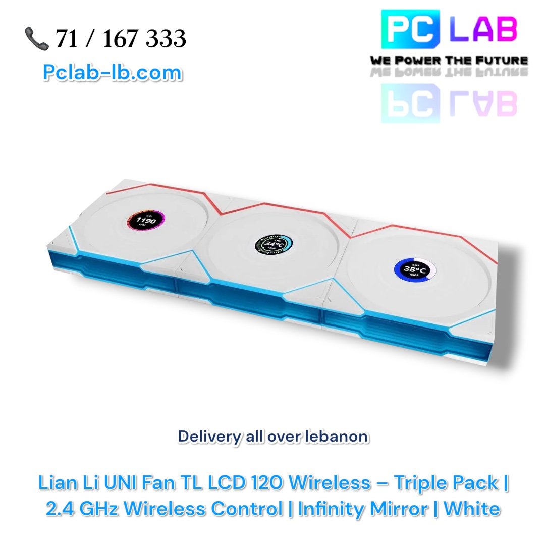 ▸ SKU: 12TLLCD1W3W-WHITE ▸ Brand: Lian Li ▸ Model: 12TLLCD1W3W ▸ Fan Size: 120mm ▸ Fan Count: 3 ▸ Type: Case Fan ▸ Color: White ▸ LED: Addressable RGB ▸ Controller Included: Yes (Required) ▸ Wireless Signal: 2.4 GHz ▸ Bearing Type: Fluid Dynamic ▸ Cooling Method: Fan ▸ Special Features: 1.6″ LCD Display, Infinity Mirror, Daisy-Chain, Wireless ARGB Control ▸ Compatibility: Desktop PC (ATX / Micro-ATX / Mini-ITX)