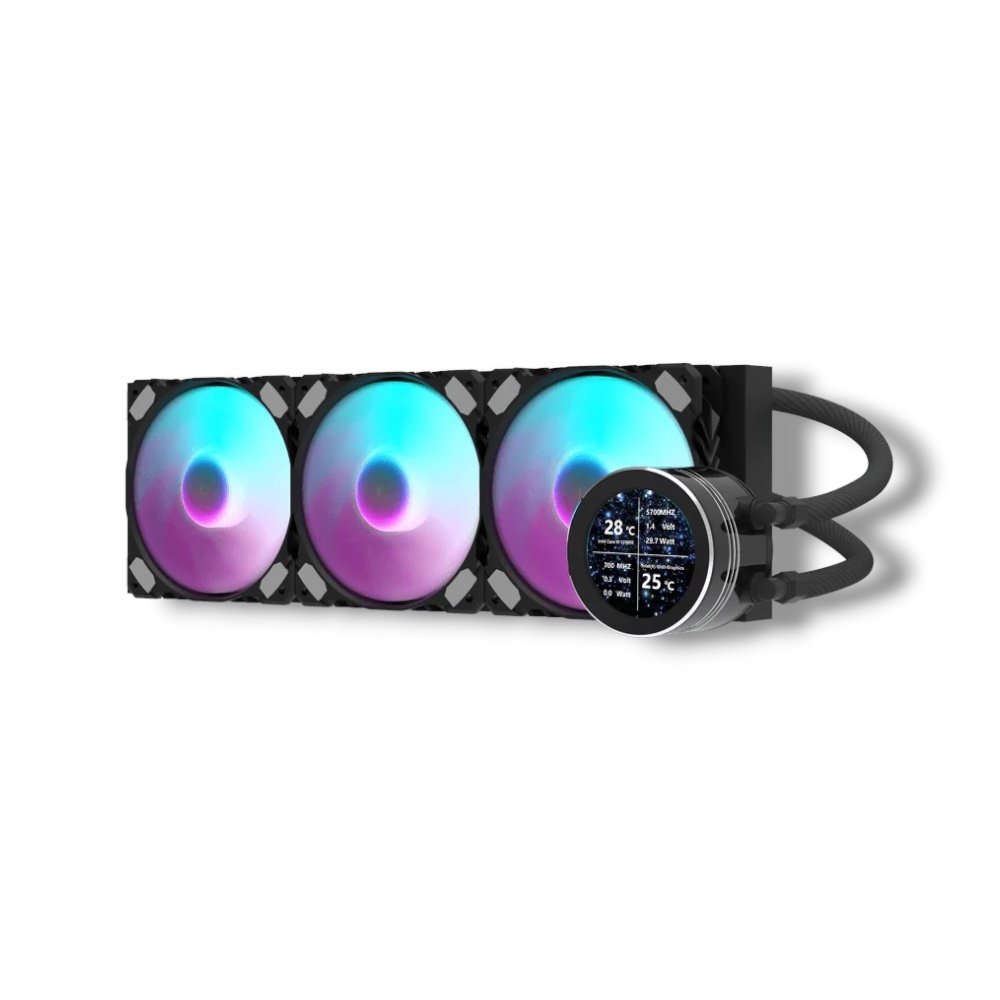 ASIAHORSE 360mm ARGB Liquid Cooler | 2.8″ IPS LCD Display | 3×120mm PWM ARGB Fans | Copper Cold Plate | Black