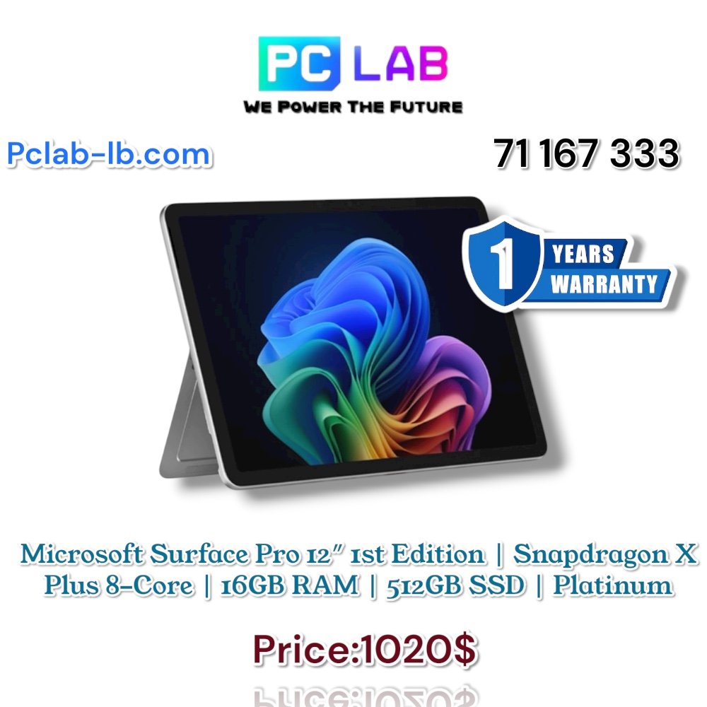 ▸ SKU: EP2-27658 ▸ Model: Microsoft Surface Pro 12″ 1st Edition ▸ Display: 12″ PixelSense Touchscreen ▸ Processor: Qualcomm Snapdragon X Plus (8-Core) ▸ Memory: 16GB RAM ▸ Storage: 512GB SSD ▸ Graphics: Integrated Qualcomm Adreno GPU ▸ Operating System: Windows 11 Copilot+ Ready ▸ Color: Platinum ▸ Form Factor: 2-in-1 Detachable Tablet/Laptop ▸ Battery Life: All-day usage (varies by workload) ▸ Connectivity: Wi-Fi, Bluetooth, Surface accessories support ▸ Audio & Camera: Dual Studio Mics, HD front & rear cameras ▸ Weight: Lightweight and portable