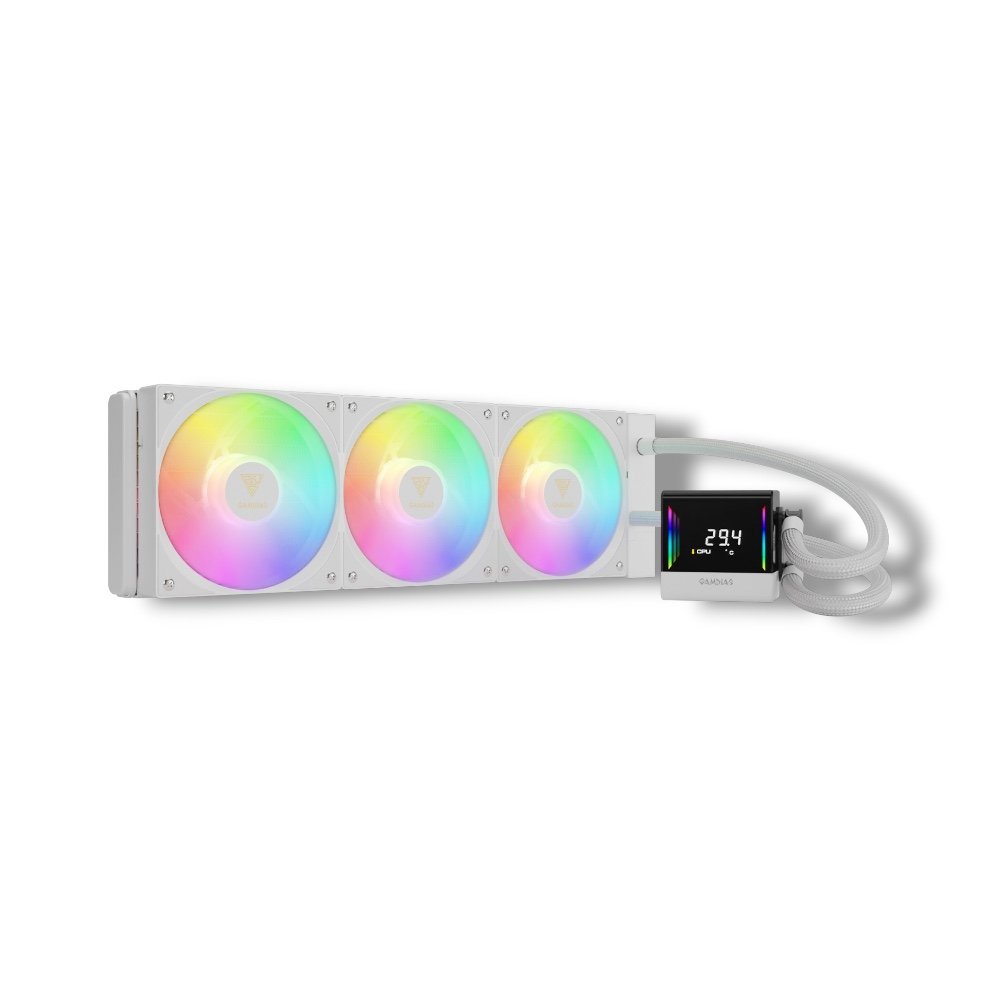 GAMDIAS CHIONE E4 360mm AIO ARGB WHITE CPU Liquid Cooler | Real-time Display | PWM Pump | Hidden Cable Design | 3× 120mm ARGB Fans | Intel LGA1700/1200 & AMD AM5/AM4