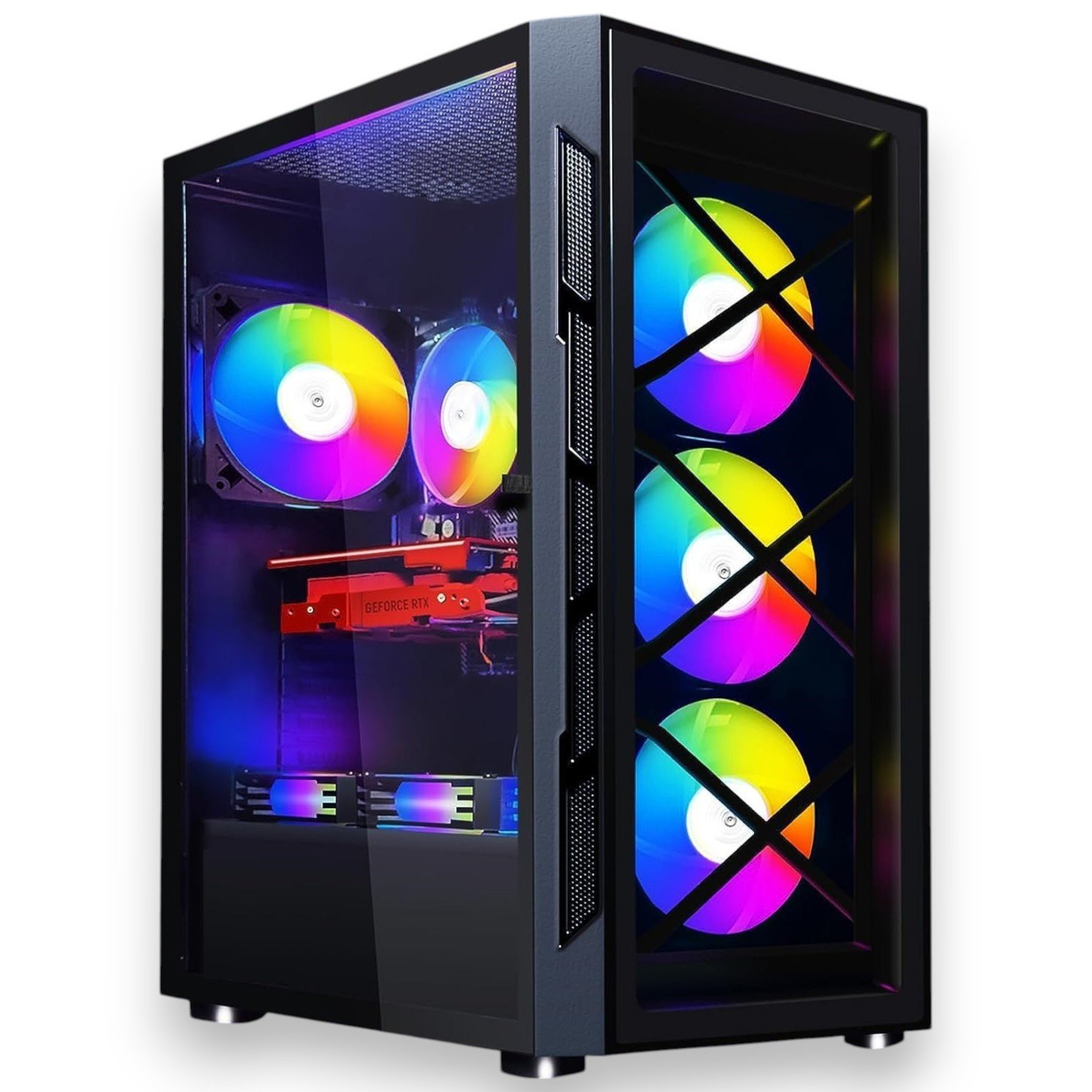 💻 MAGNUM / EL-BOMBA SX-C2103 Mid-Tower Gaming PC Case | 4 Built-in RGB Fans | Tempered Glass Panels | Supports E-ATX / ATX | Black