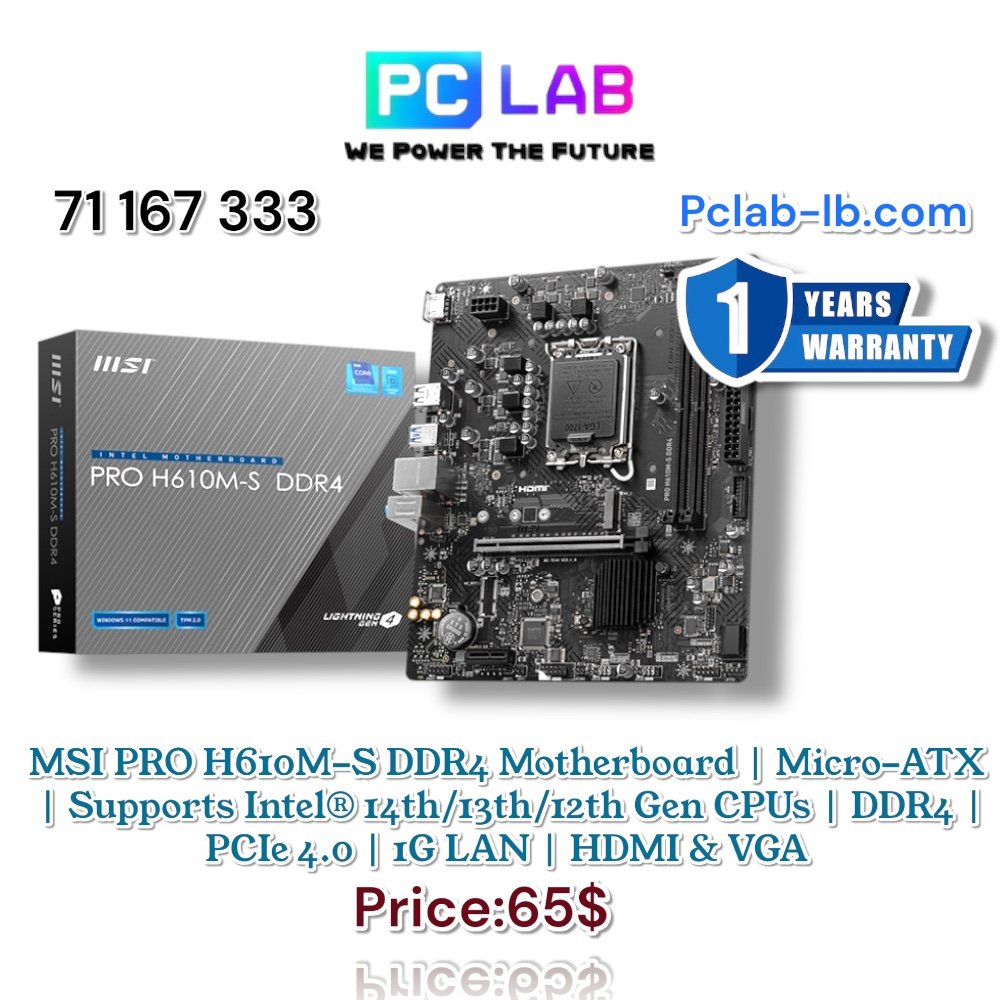 MSI PRO H610M-S DDR4 Motherboard | Micro-ATX | Supports Intel® 14th/13th/12th Gen CPUs | DDR4 | PCIe 4.0 | 1G LAN | HDMI & VGA | 1-Year Warranty
