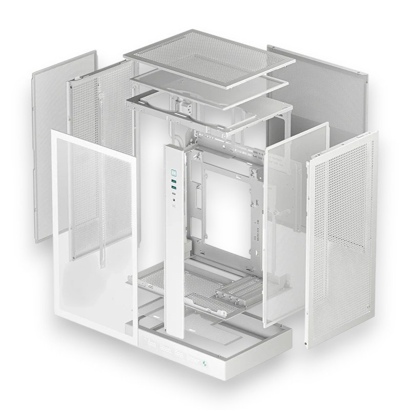 📦 SKU: R-CH270-WHNDM0-G-1 🎯 Features – DeepCool CH270 DIGITAL WH ✔ Micro-ATX Ready – Supports Mini-ITX and Micro-ATX motherboards with rear connector layouts for modern hardware. ✔ Tempered Glass Showcase – Displays internal RGB and components with perforated front and top mesh panels for airflow and style. ✔ Digital Vertical Base – Integrated display shows CPU, GPU, and PSU vitals in real-time for easy monitoring. ✔ Massive Component Compatibility – Supports GPUs up to 388mm (413mm without top fan placement) and ATX PS2 power supplies with removable bracket. ✔ Uncompromised Cooling – Full mesh panels with up to six 120mm fan placements; supports 360mm side AIO radiators or CPU coolers up to 174mm. ✔ Fan & Radiator Flexibility – Top: 2×120mm; Side: 3×120mm / 2×140mm; Bottom: 1×120mm; Radiators: Side 120/240/360mm, Bottom 120mm. ✔ Enhanced Building Experience – Tool-free top panel access, four removable dust filters, and reusable PCI-e baffles for streamlined installation and maintenance. ✔ Modern I/O Ports – Two USB 3.0 ports, one Gen2 Type-C, and Audio/Mic combo jack for convenient connectivity. 📊 Specs – DeepCool CH270 DIGITAL WH ▸ Model: DeepCool CH270 DIGITAL WH ▸ Case Type: Micro-ATX / Mini-ITX ▸ Color: White ▸ Material: ABS + SPCC + Tempered Glass ▸ Motherboard Support: Mini-ITX / Micro-ATX (Rear Connector) ▸ Expansion Slots: 4 ▸ Drive Bays: 1×3.5″ / 2×2.5″ (shared) ▸ Fan Support: Top: 2×120mm | Side: 3×120mm / 2×140mm | Bottom: 1×120mm ▸ Radiator Support: Side: 120/240/360mm | Bottom: 120mm ▸ CPU Cooler Height Limit: 174mm ▸ GPU Clearance: 388mm / 413mm (No Top Fans) ▸ PSU Compatibility: ATX PS2 (Max Length 150mm) ▸ Front I/O Ports: 2×USB 3.0 | 1×Gen2 Type-C | 1×Audio/Mic ▸ Dimensions (L×W×H): 296 × 225 × 486 mm ▸ Net Weight: 5.8 kg ▸ EAN / P/N: 6933412765257 / R-CH270-WHNDM0-G-1 📦 Included in the Box 1 × DeepCool CH270 DIGITAL WH Micro-ATX Gaming Case 4 × Removable Dust Filters ⚡ Spacious, high-airflow, and display-ready — ideal for Micro-ATX and Mini-ITX gaming builds with top-tier cooling and component compatibility. 🎮💻