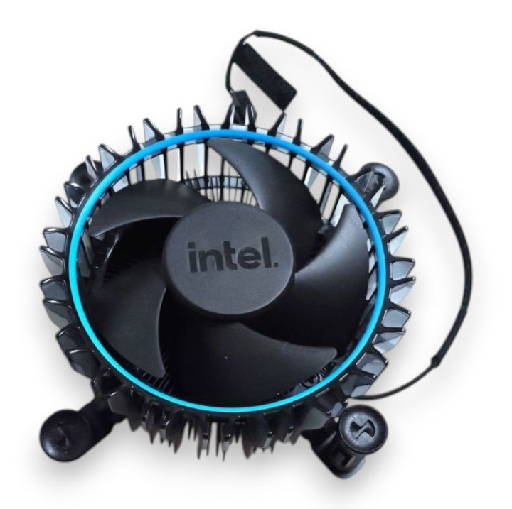 Product Code (SKU): FAN-CPU-1700 🎯 Features – Intel LGA 1700 Original Fan ✔ Official Intel Cooler – Genuine stock CPU cooler bundled with Intel 12th & 13th Gen processors, ensuring reliable performance and compatibility. ✔ Efficient Cooling Design – Aluminum heatsink with a copper core provides up to 65W+ cooling capacity, depending on system airflow and ambient temperature. ✔ PWM Control – 4-pin PWM fan offers automatic speed adjustment for optimized cooling and reduced noise levels. ✔ Enhanced Build – Upgraded all-black design compared to older silver/blue Intel stock coolers for a modern look. ✔ Easy Installation – Pre-fitted mounting compatible with LGA 1700 socket CPUs, ready for quick setup. ✔ Durable & Reliable – Backed by a 1-Year Warranty for worry-free use. 📊 Specs – Intel LGA 1700 Stock Cooler ▸ Model: Intel Original LGA 1700 Cooler ▸ Cooling Capacity: 65W+ (Varies by airflow & ambient temperature) ▸ Fan Type: PWM (4-Pin Connector) ▸ Material: Aluminum Heatsink with Copper Core ▸ Color: Black ▸ Compatibility: Intel 12th / 13th Gen CPUs (LGA 1700 Socket) ▸ Warranty: 1 Year ⚡ Compact, quiet, and reliable Intel stock cooler with PWM fan and copper-core heatsink — ideal for standard 12th/13th Gen builds. 🖥️✨