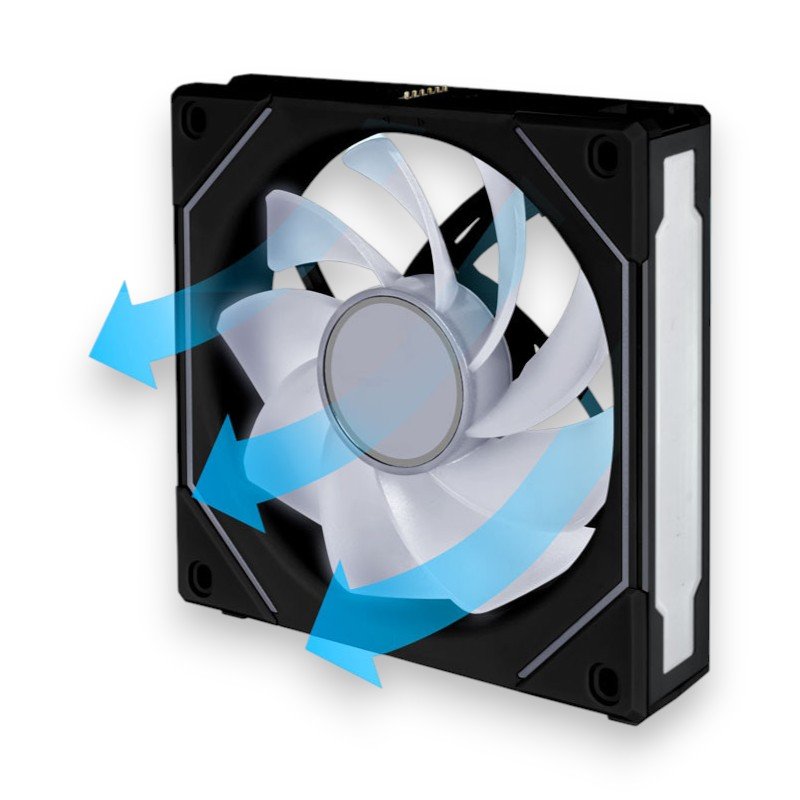 Product Code (SKU): UF-SLIN120-1B 🎯 Features – LIAN LI UNI FAN SL-INF 120 ✔ Infinity Mirror ARGB Design – Multi-layer infinity mirror effect with 40 LEDs per fan for vibrant 3D lighting from any angle. ✔ Software-Controlled Lighting & Speed – Customize fan speed and ARGB lighting via LIAN LI software. ✔ Daisy Chain Connectivity – Only one cable needed for a cluster of fans; pin-to-pad contact passes power and signal through fan cluster. ✔ Durable & Stable – Embedded magnetic fluid dynamic bearing ensures longevity and smooth operation. ✔ Modular & Easy Installation – Removable keylock and quick PIN connection improve compatibility with radiators and simplify setup. ✔ Low Noise Operation – Designed for minimal noise even at high RPM. ✔ Elegant Aluminum Trim – Geometric infinity mirror trim complements side LED strips and rear ARGB rim around the LIAN LI logo. 📊 Specs – LIAN LI UNI FAN SL-INF 120 ▸ Model: UF-SLIN120-1B ▸ Fan Size: 120 × 120 × 25 mm ▸ LEDs: 40 per fan, addressable ARGB ▸ Bearing Type: Magnetic Fluid Dynamic Bearing ▸ Connector: Daisy Chain Compatible ▸ Modularity: Supports up to 4 fans in a cluster ▸ Cable: Reversible central cable module for radiator clearance ▸ Noise Level: Low noise operation ▸ Compatibility: Works with radiators and standard 120mm fan mounts ⚡ High-performance 120mm infinity mirror ARGB fan with modular daisy chain design, silent operation, and stunning multi-layer lighting — perfect for stylish gaming builds. 🎮✨