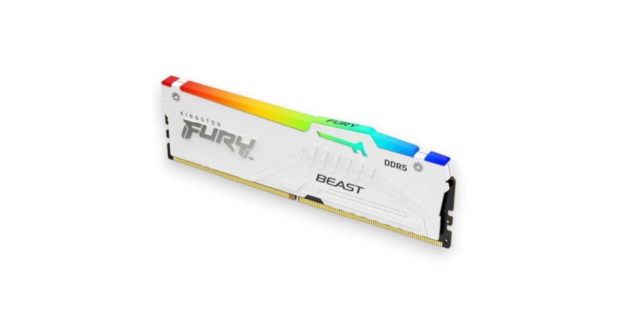 SKU: KF560C36BWE2A-16 📍Description ▸ Capacity: 16GB (Single Module) designed for high-performance gaming and professional multitasking. ▸ Type: 288-Pin DDR5 Desktop Memory with next-gen speed and power efficiency. ▸ Speed: DDR5 6000MT/s for ultra-fast responsiveness and improved data bandwidth. ▸ CAS Latency: CL36 ensuring low-latency and optimized system precision. ▸ Voltage: 1.35V (OC) / 1.1V (JEDEC) for stable and efficient operation. ▸ Performance Profile: Intel® XMP 3.0 and AMD® EXPO™ v1.1 compatible with customizable overclock profiles. ▸ RGB Lighting: Fully customizable RGB with Kingston FURY CTRL software and patented Infrared Sync Technology for synchronized lighting. ▸ Design: Sleek white aluminum heat spreader offering a modern look and superior thermal control. ▸ On-Die ECC: Integrated error correction (ODECC) for enhanced data integrity and overclocking stability. ▸ Plug & Play: Ready for instant high-speed performance without manual BIOS adjustments. ▸ Build Quality: 288-pin gold contact DIMM ensuring durability and long-lasting performance. ▸ Compatibility: Qualified by leading motherboard manufacturers for flawless integration. A premium white DDR5 RGB memory module blending cutting-edge speed, precision, and style. With Intel XMP 3.0, AMD EXPO, On-Die ECC, and customizable RGB lighting, the Kingston FURY Beast RGB DDR5 White Edition delivers the perfect balance of beauty, performance, and reliability — ideal for high-end gaming and next-gen PC builds.