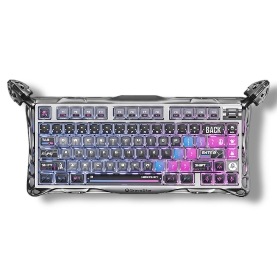 ▸ SKU: 506193-MERCURY-V75 ▸ Product Name: GravaStar Mercury V75 Pro ▸ Keyboard Layout: 75% ▸ Switch Type: GravaStar × Gateron Magnetic Jade Gaming Switch ▸ Switch Technology: Hall Effect Magnetic ▸ Actuation Precision: 0.005mm ▸ Adjustable Actuation Range: 0.1mm – 3.5mm (0.1mm increments) ▸ Polling Rate: True 8000Hz ▸ Key Scan Rate: 256kHz ▸ Latency: 0.125ms ▸ Rapid Trigger: Dynamic Rapid Trigger + Rapid Trigger Mode ▸ Input Priority: Last Keystroke Prioritization (LKP) + Snap Click ▸ Construction: Semi-Aluminum Frame with Premium Plastic Base ▸ Sound Dampening: 5-Layer Acoustic Foam ▸ RGB Lighting: 16 Modes, Dual-Zone, Multi-Zone RGB ▸ Connectivity: Wired ▸ Operating System Support: Windows XP or above / macOS ▸ Dimensions: 415 × 187.6 × 57.6 mm ▸ Weight: 1.09 kg (2.40 lb) ▸ Warranty: 12-Month Limited Hardware Warranty