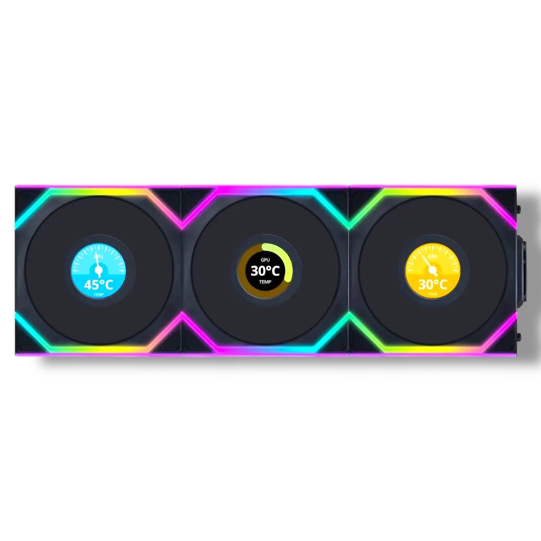 LIAN LI UNI FAN SL LCD Wireless 120mm ARGB – Triple Pack + Controller (Black)