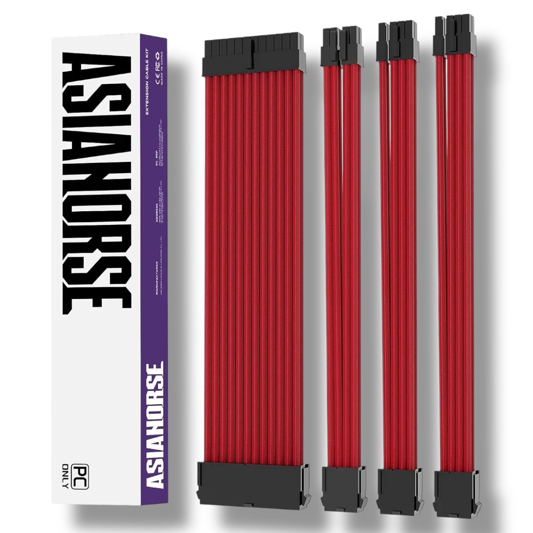 ASIAHORSE 18AWG Red Extension Kit | 4-Pack Braided Sleeved Cables