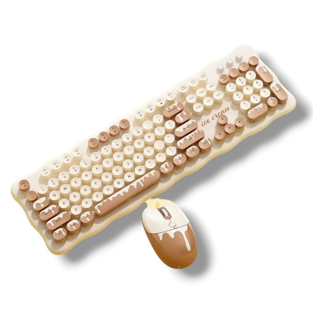 MOFii Ice Cream Wireless Keyboard & Mouse Combo – Full Size, Milk Tea Design, 2.4G